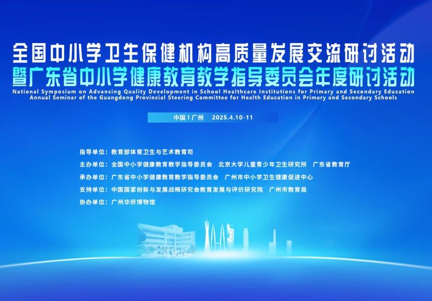 2025年4月10至11日,“全國中小學(xué)衛(wèi)生保健機(jī)構(gòu)高質(zhì)量發(fā)展交流研討活動(dòng)暨廣東省中小學(xué)健康教育教學(xué)指導(dǎo)委員會(huì)年度研討活動(dòng)”在廣州成功舉辦。活動(dòng)由教育部體育衛(wèi)生與藝術(shù)教育司指導(dǎo),全國中小學(xué)健康教育教學(xué)